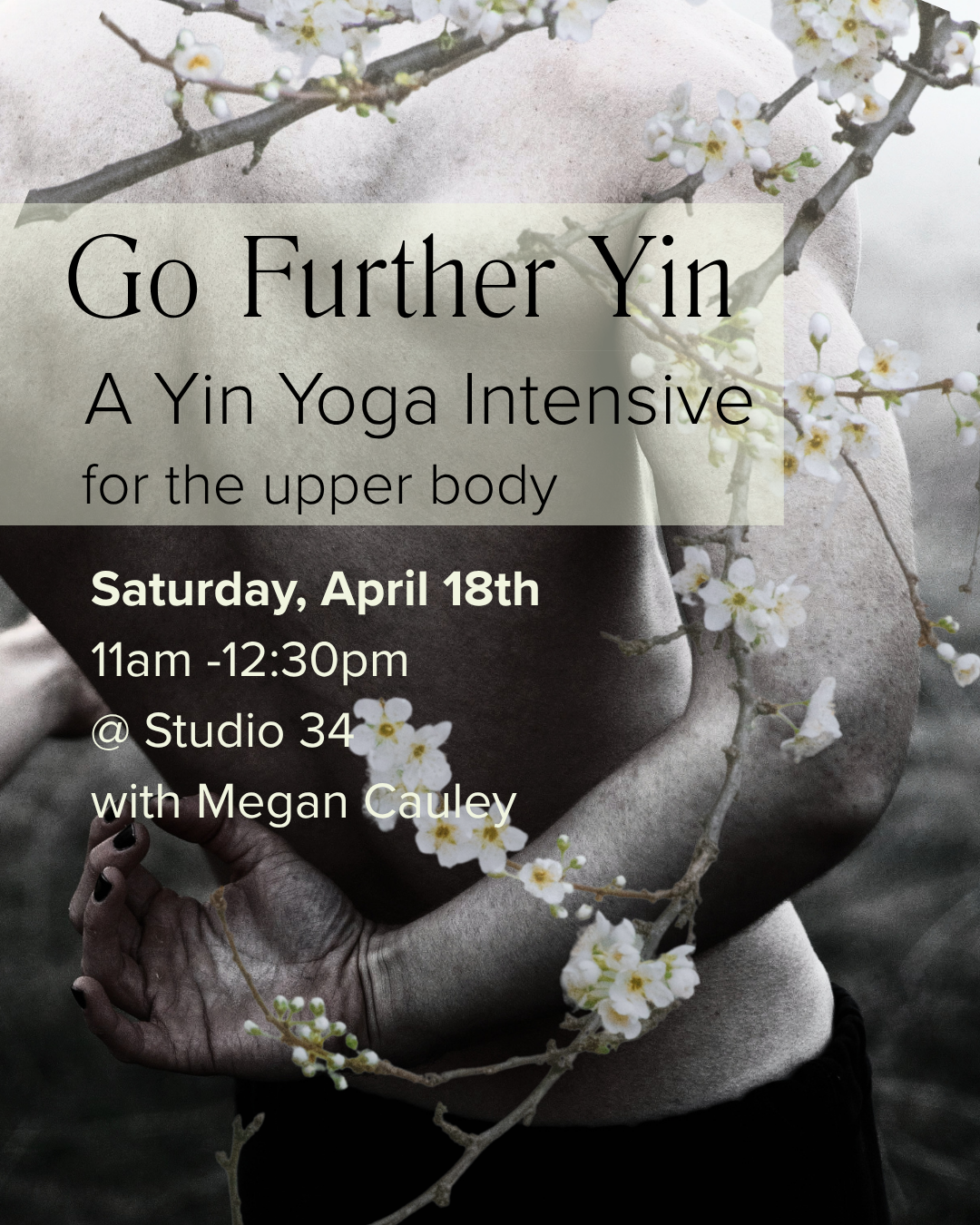 Join us for an immersive yin yoga workshop led by Megan Cauley, a compassionate teacher with over 10 years’ experience. This intensive focuses on nourishing the connective tissues of the shoulders, thoracic spine, neck, and arms. Experience a nurturing, full-body practice with an emphasis on the upper body, helping you release tangled grief, stress, and worry, while reconnecting with your creativity and courageous heart. All experience levels are welcome, so whether you are new to yin yoga or a seasoned practitioner, you will feel supported.